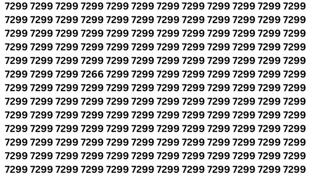 In this puzzle, you are presented with a grid filled almost entirely with the number 7299. Hidden within the pattern is one different number: 7266. Your goal is to spot it in just eight seconds. The difference is subtle, the layout is dense, and the time limit encourages haste. Together, these elements make the challenge surprisingly difficult.