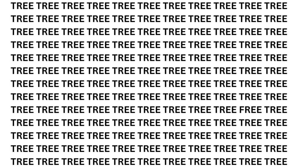In this challenge, your goal is to identify the word “Free” hidden within a grid filled with the word “Tree.” At a glance, the words appear nearly identical, which makes the task more demanding than it seems. The key difference lies in one letter, and spotting it requires close visual attention.