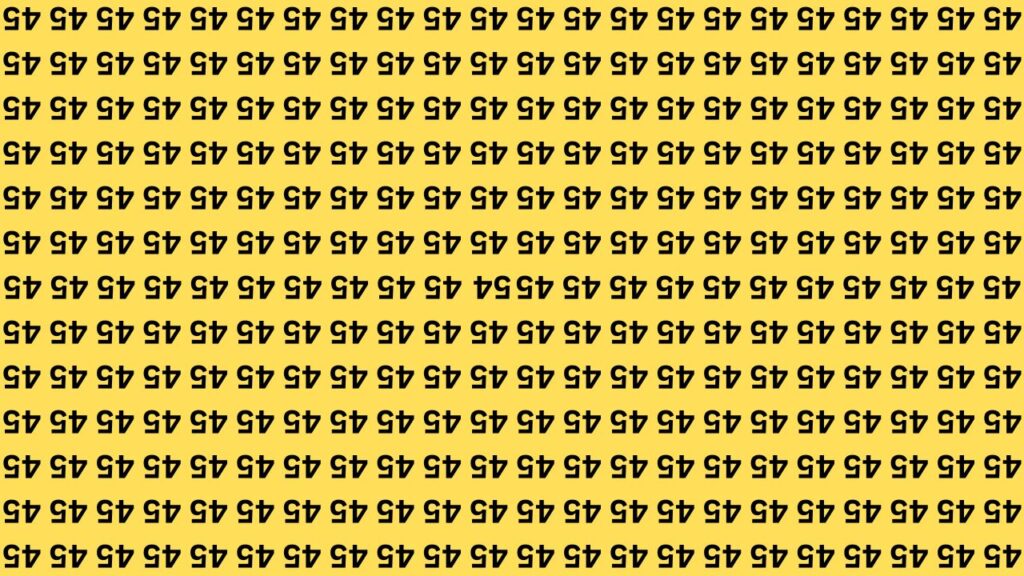 Optical illusion IQ tests challenge both your vision and how your brain recognizes patterns when you’re under time pressure. This puzzle shows how easily your mind can be fooled. When you first look at the image it seems full of identical inverted numbers. Every symbol appears the same and creates a neat repeating pattern. But somewhere in this grid of inverted 45s there is one inverted 54 hiding. Your job is to spot it in just nine seconds. The task seems easy until the timer begins. Once the countdown starts the illusion becomes harder to solve. Your brain attempts to work faster by using pattern recognition instead of examining details carefully. This mental shortcut is exactly why most people fail to find the hidden inverted 54 on their first try.
