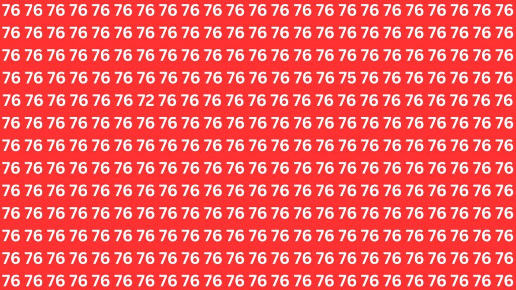 At first look, the grid appears packed with repeating 76s, filling nearly every visible space. Your challenge is to quickly locate the numbers 72 and 75, which are carefully concealed within this pattern. This task is not only about speed but also about concentration and visual awareness. Because the numbers share the same size, color, and font style, the illusion easily causes the brain to overlook what does not immediately stand out.