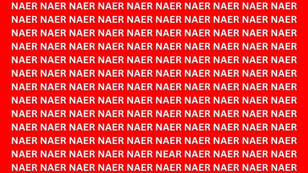 The Spot the Word optical illusion is created to assess how quickly you can recognize patterns and notice details within a visually confusing layout. Your goal is to identify the hidden word “NEAR” among a cluster of letters that closely resemble “NAERs”.