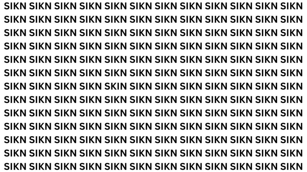 Optical illusions take advantage of how the brain processes visual input. The human mind is designed to identify patterns quickly, which usually helps us make sense of information efficiently. However, when patterns repeat too often, the brain assumes consistency and stops checking details closely. In this puzzle, the repeated SIKN pattern encourages the brain to rely on shortcuts instead of careful inspection.